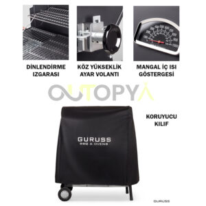Guruss CG-075 Kömürlü Barbekü Mangal Siyah + Önlük + Kılıf