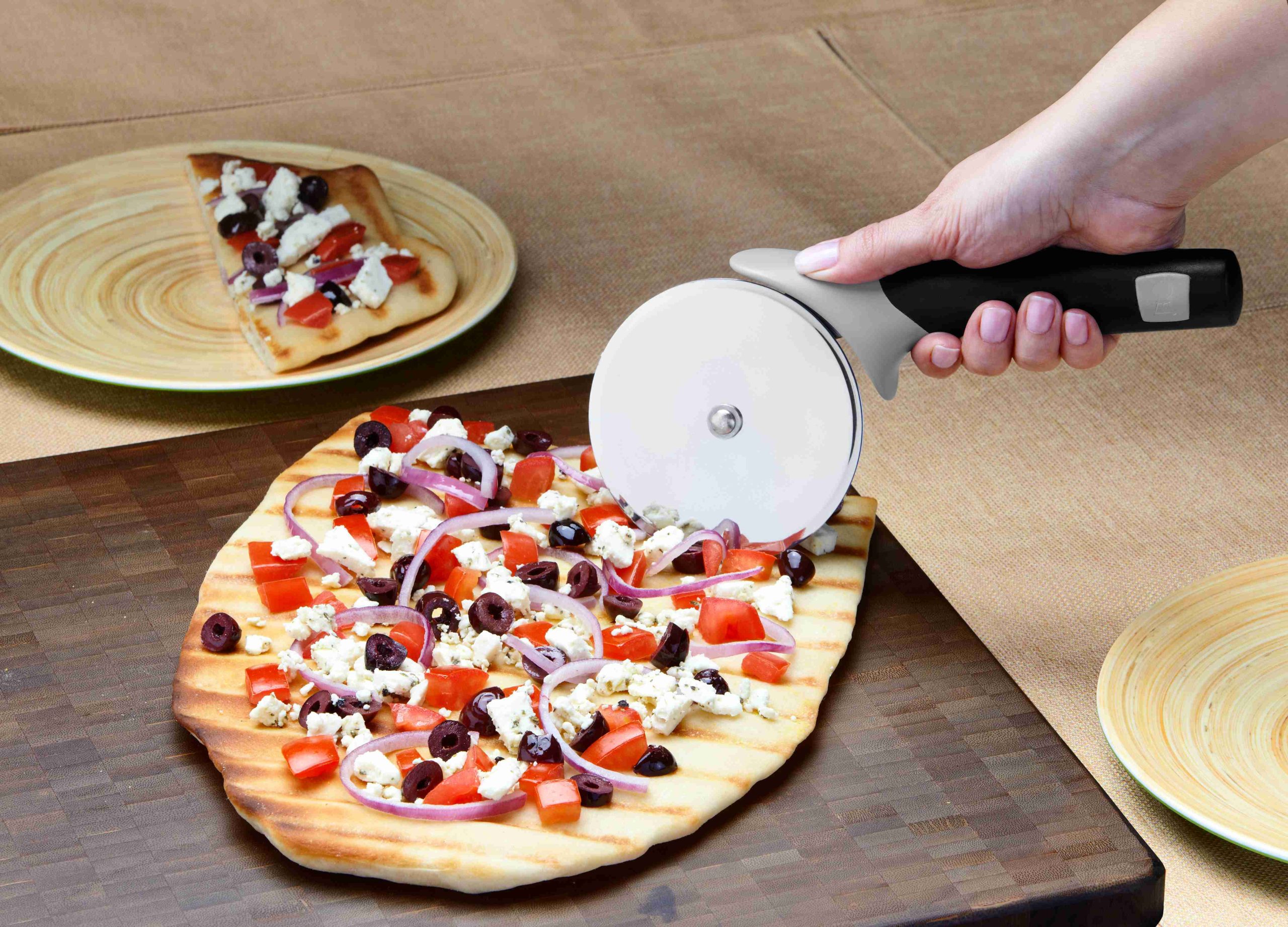 Bu kesici her türlü pizzayı kolaylıkla keser ve yumuşak kauçuk kaplaması ekstra kavrama sağlar.