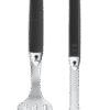Bu alet seti, kolay kavranan kauçuk saplı bir spatula ve kilitli maşa içerir. Kompakt 35 cm uzunluk, kamp, piknik ve alanı dar olanlar için mükemmeldir.